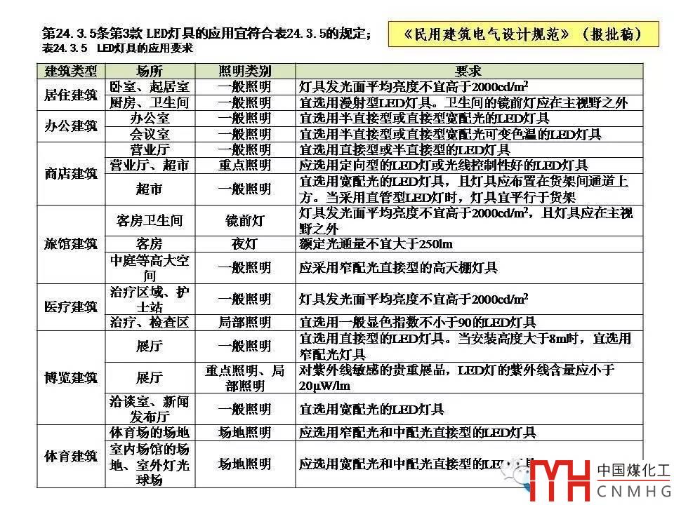 新版本的《民用建筑電氣設(shè)計規(guī)范》已經(jīng)完成報批稿,對LED的應(yīng)用起到引導(dǎo)性的作用。