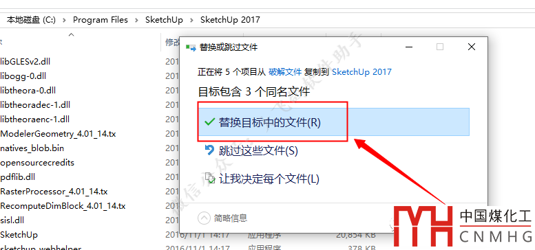 點擊【替換目標(biāo)中的文件】。