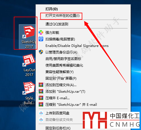 鼠標(biāo)右擊【SketchUp 2017】軟件圖標(biāo)選擇【打開文件所在的位置】