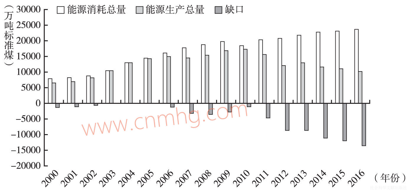 圖3 2000~2016年河南省能源供需情況