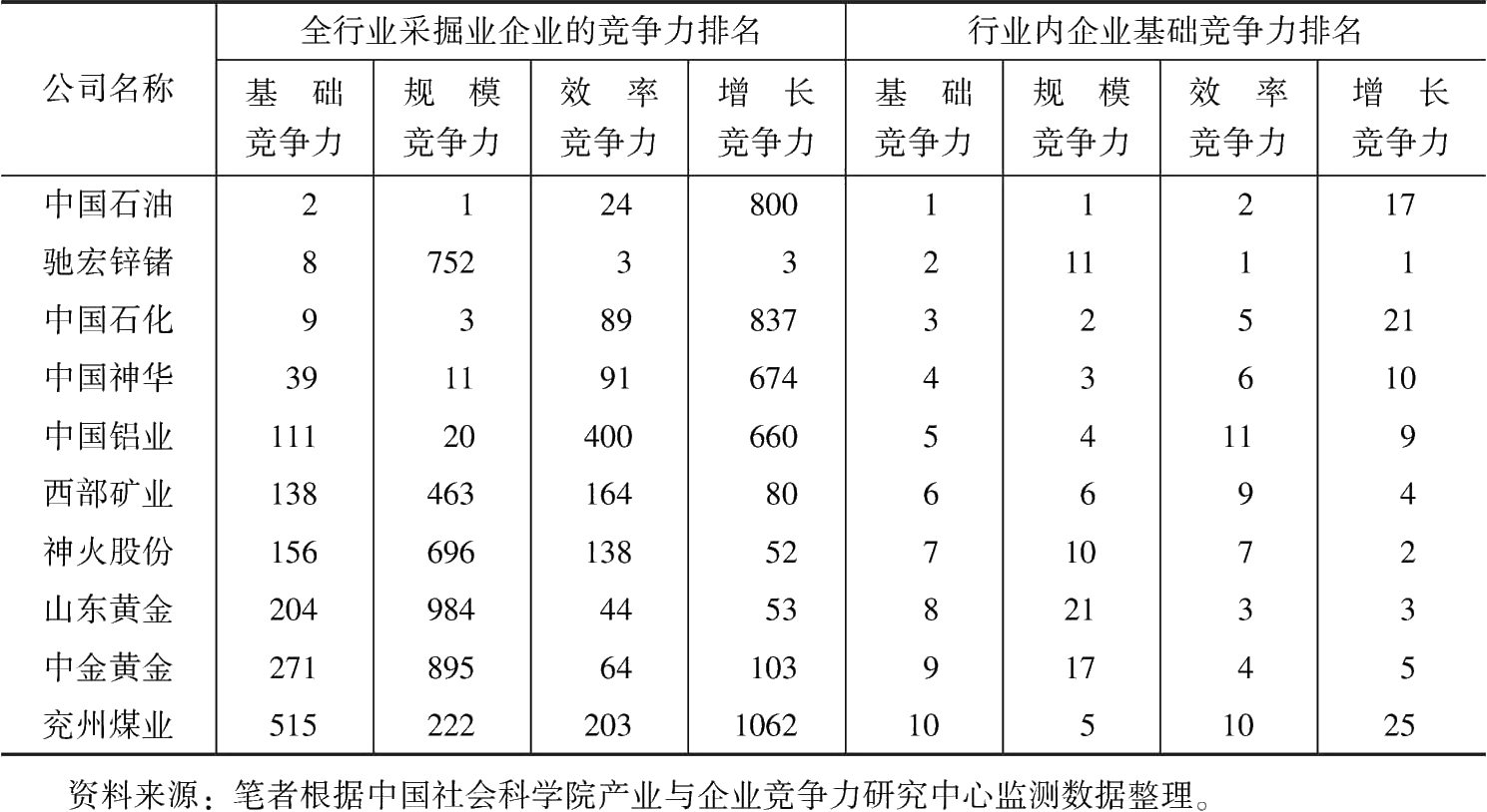 (一)采掘與冶煉業(yè)企業(yè)基礎(chǔ)競爭力分析
