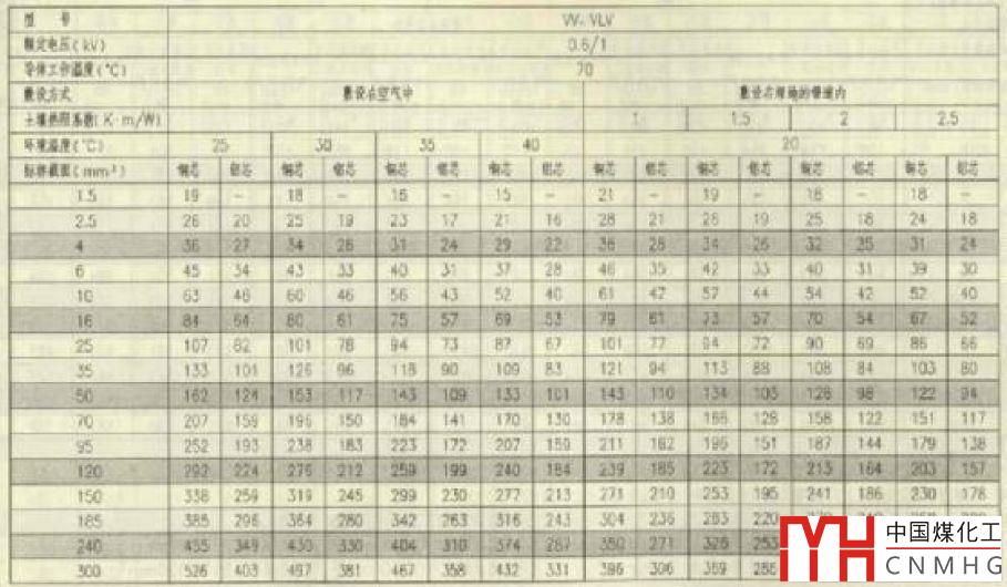 圖2 VV電纜載流量選擇表
