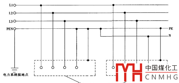 b)TN-C-S系統(tǒng):系統(tǒng)中有一部分中性導(dǎo)體和保護導(dǎo)體是合一的(PEN線)。