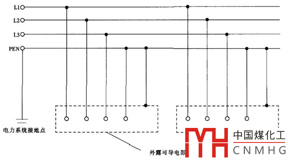 a)TN-C系統(tǒng):在整個系統(tǒng)中,中性導(dǎo)體和保護導(dǎo)體是合一的(PEN線)。