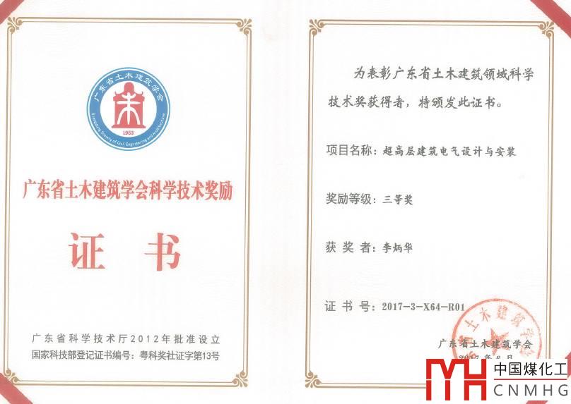 喜訊:《超高層建筑電氣設計與安裝》14D801獲廣東省科學技術三等獎!