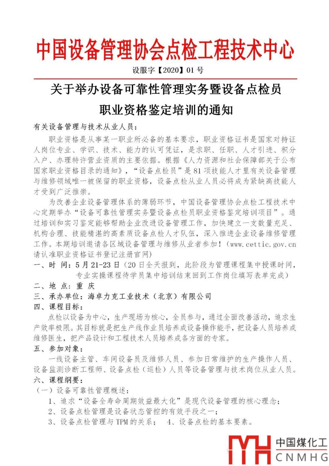 我國疫情即將過去,2020年春季首期設(shè)備點檢員國家職業(yè)資格培訓(xùn)與考核將在重慶舉行。以下是通知正文。