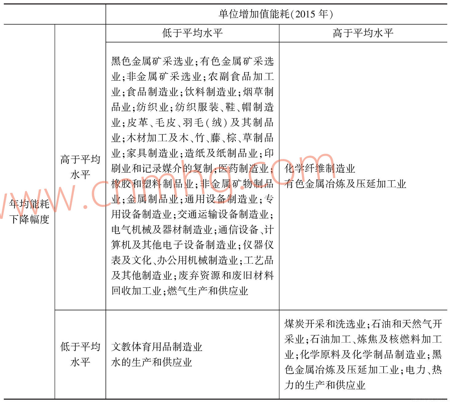 根據(jù)2015年單位增加值能耗和2010年以來年均能耗降幅,本文將工業(yè)38個行業(yè)分為4類(見表3)。