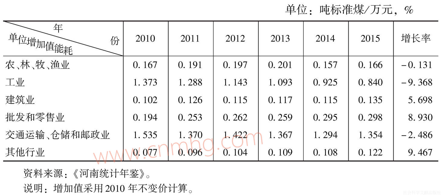 表3 河南省各行業(yè)能源效率的情況