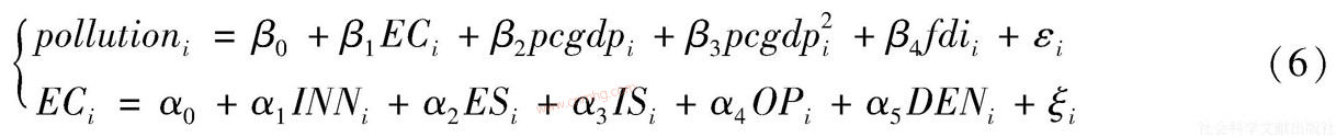 pollutioni=β0+β1ECi+β2pcgdpi+β3pcgdp2i+β4fdii+εi ?。?)