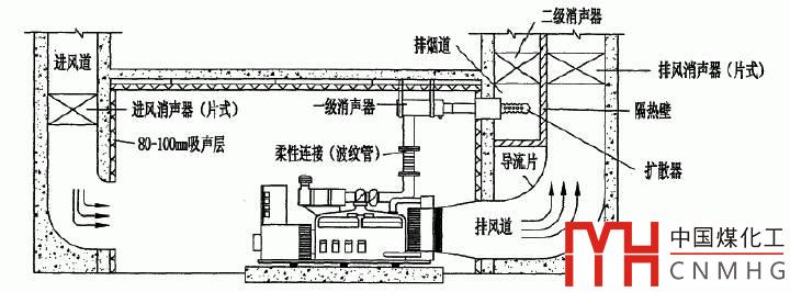 圖1 柴油發(fā)電機(jī)房噪音處理措施示意