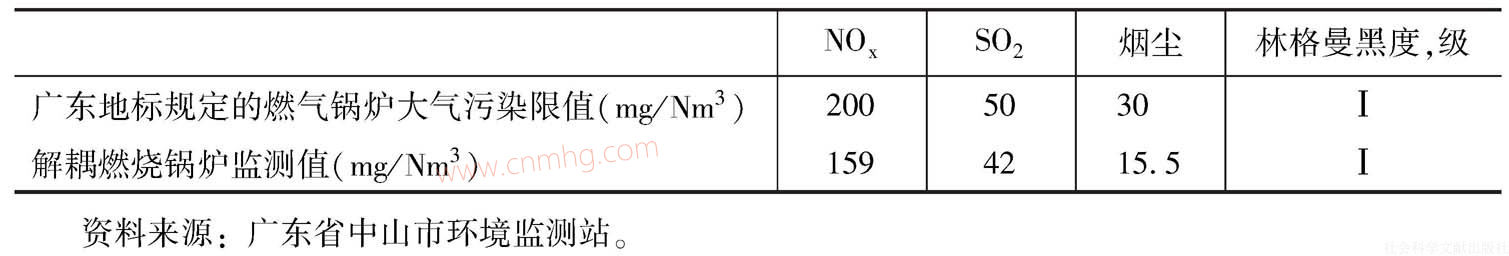表1 廣東省中山市環(huán)境監(jiān)測(cè)站2013年8月28日對(duì)小欖人民醫(yī)院運(yùn)行工業(yè)鍋爐檢測(cè)結(jié)果