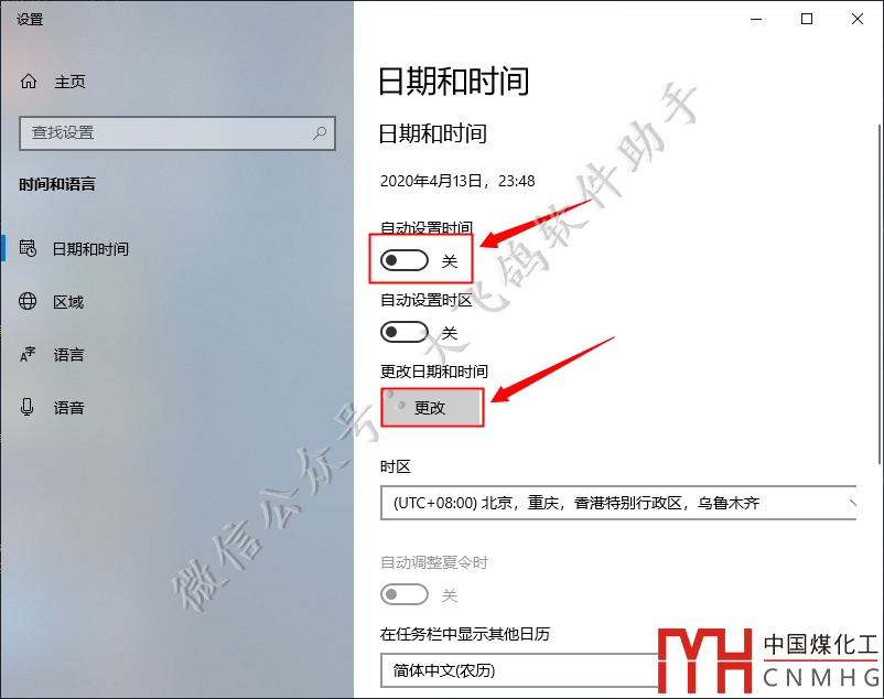 自動設置時間選擇【關】,點擊【更改】