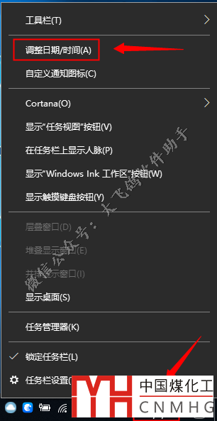 由于許可證問題,必須調(diào)整計算機的時間,步驟如下,在時間上鼠標右鍵【調(diào)整日期/時間】