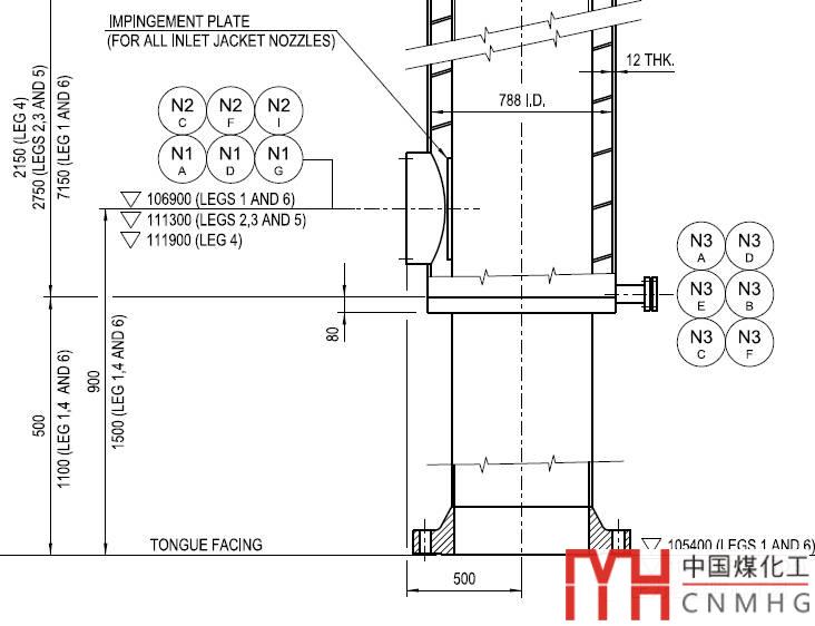 首先項(xiàng)目上說(shuō)有個(gè)凸緣管口載荷很大,無(wú)法計(jì)算,同時(shí)想要節(jié)省成本,需要進(jìn)行有限元分析。凸緣見(jiàn)附件N2CFI和N1ADG的位置,設(shè)備按照ASME VIII I設(shè)計(jì)。