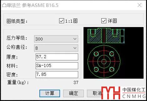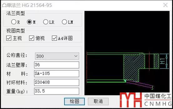 在VCAD有兩個(gè)凸緣繪制程序,均可以繪制1:1的凸緣,以及A4的凸緣制造圖。其中一個(gè)按照HG 21564-95,可以繪制R,M,LR,LM型凸緣。一個(gè)根據(jù)Pressure vessel Hand book繪制ASME的凸緣。