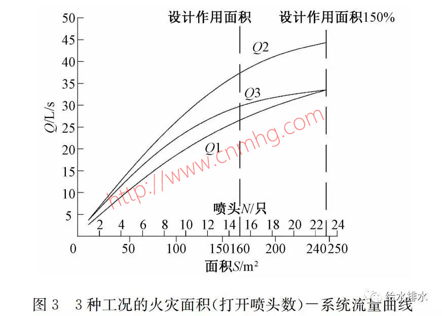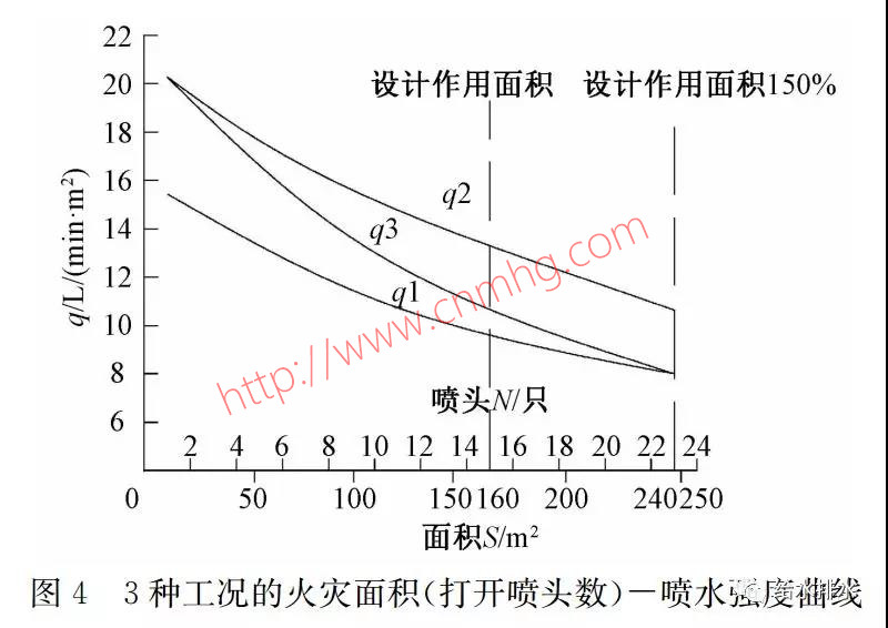 (1)由于規(guī)范規(guī)定的作用面積并非火災發(fā)生時的實際蔓延面積,一場尚未得到有效控滅的火災,一定是從點到面、從小到大發(fā)展的,擴散速度一般也是由慢到快的過程。而設計作用面積也僅是火災蔓延過程中的一個時點;同樣,自動噴水滅火系統(tǒng)正常工作時,實際噴水強度也非設計噴水強度,由于管道阻力的變化,實際噴水強度變化一定是從大變小的過程。
