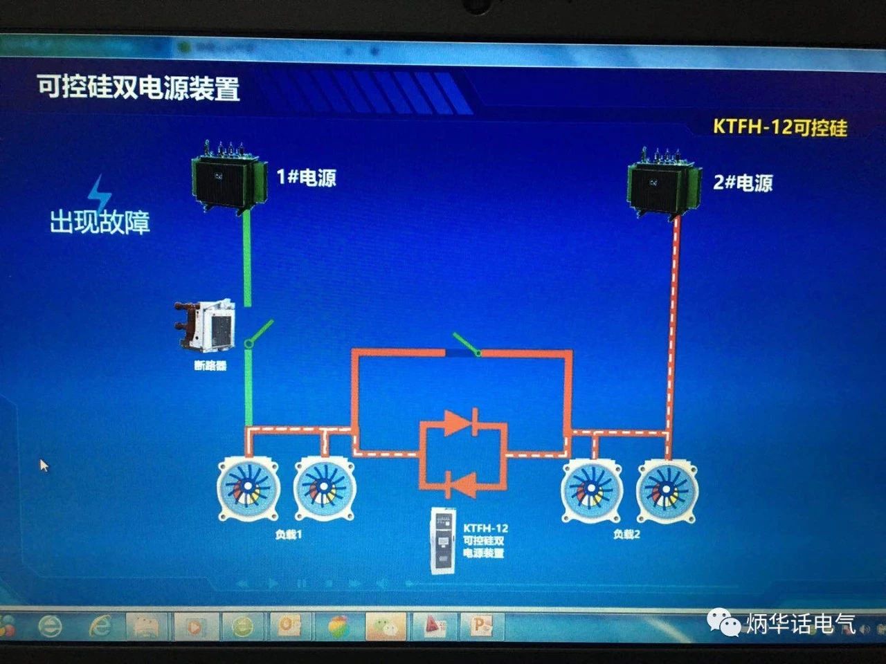 這是一個(gè)可控硅雙電源快速切換設(shè)備,主要用于12kV雙路電源切換,當(dāng)一路電源失壓時(shí),該設(shè)備快速切換到另一路電源,繼續(xù)為負(fù)荷供電,確保負(fù)荷的連續(xù)工作。