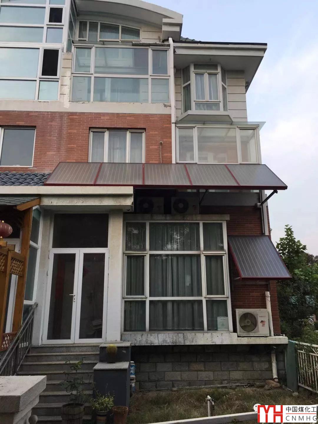 考慮到建筑的美觀,以及聯(lián)排別墅的局限,該項(xiàng)目在南立面設(shè)置了6塊光伏板,分上下兩層,上層對(duì)窗戶略有遮擋,但可以接受。屋頂安裝兩塊光伏板,均采用支架支撐,與建筑結(jié)合較好!