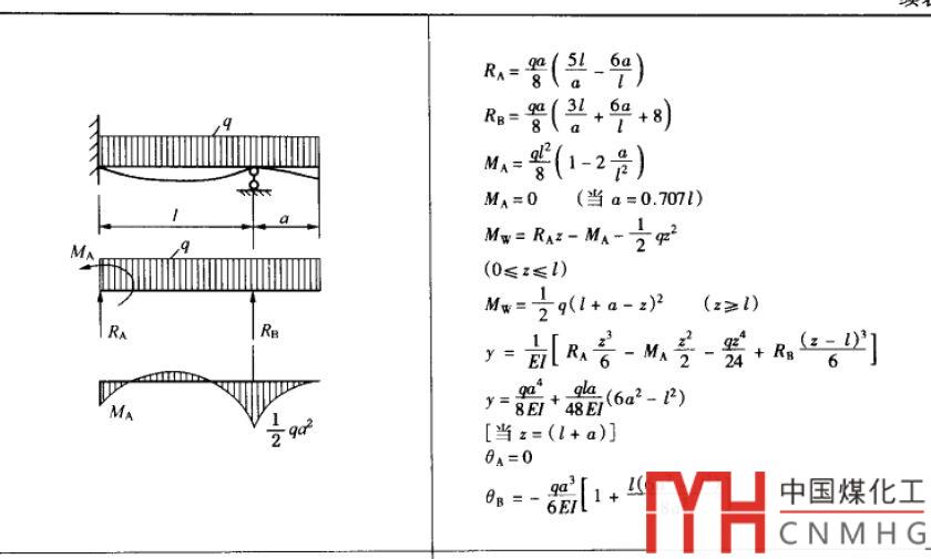 如果設(shè)備只有一個導(dǎo)向,受均布載荷的梁的力和彎矩通過公式就很容易求得。