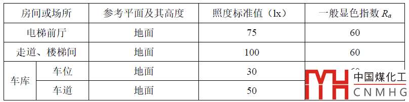住宅建筑公共區(qū)域的照度和一般顯色指數(shù)不應(yīng)低于下表規(guī)定的標(biāo)準(zhǔn)值。