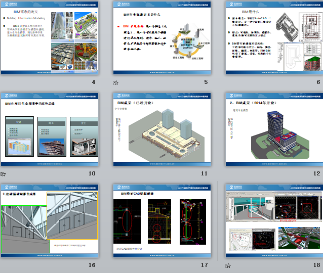 附件大?。?5.34MB所屬分類:BIM資料分享會(huì)員:芳華分享時(shí)間:2021-09-08最后更新:資源簡(jiǎn)介/截圖:演講大綱1、我公司介紹 2、BIM概念定義 3、BIM行業(yè)標(biāo)準(zhǔn)概念 4、BIM設(shè)計(jì)的成果案例介紹 5、BIM在設(shè)計(jì)階段的各種應(yīng)用 6、BIM在設(shè)計(jì)企業(yè)中如何實(shí)施(北緯華元做的真實(shí)案例一個(gè)) 7、福州金融街萬達(dá)項(xiàng)目應(yīng)用的介紹BIM概念的定義: BIM是以建筑工程項(xiàng)目的各項(xiàng)相關(guān)信息數(shù)據(jù)作為模型的基礎(chǔ),建立全專業(yè)模型,通過數(shù)字信息仿真模擬建筑物所有的真實(shí)信息。BIM行業(yè)標(biāo)準(zhǔn)定義:BIM 不是軟件:是一個(gè)概念(或理念)、是一個(gè)可以提升工程建設(shè)行業(yè)從策劃、設(shè)計(jì)、施工、運(yùn)營(yíng)全產(chǎn)業(yè)鏈各個(gè)環(huán)節(jié)質(zhì)量和效率的系統(tǒng)工程。特點(diǎn):可視化,協(xié)調(diào)性,模擬性,優(yōu)化性和可出圖性五大特點(diǎn)BIM帶有的建筑信息包括: 工程項(xiàng)目的中尺寸,標(biāo)高,弧度,材質(zhì)、面積、體積等,同時(shí)BIM包括了建筑、設(shè)備、結(jié)構(gòu)的全專業(yè)模型。BIM實(shí)施應(yīng)該準(zhǔn)備的資源:硬件級(jí)別、網(wǎng)絡(luò)環(huán)境、軟件環(huán)境、實(shí)施核心團(tuán)隊(duì)的組建,第3方資源的利用。BIM項(xiàng)目管理團(tuán)隊(duì)的組建,文件的統(tǒng)一管理,族庫的管理,項(xiàng)目建模原則的管理。 項(xiàng)目實(shí)施計(jì)劃的擬定,實(shí)施團(tuán)隊(duì)的任務(wù)分配,實(shí)施過程的質(zhì)量管控,對(duì)外交流的聯(lián)系,交付的標(biāo)準(zhǔn),合同的擬定,人員的培訓(xùn)和再教育。