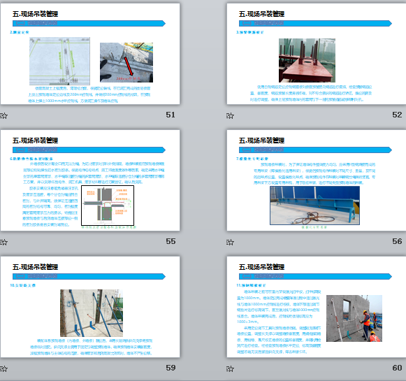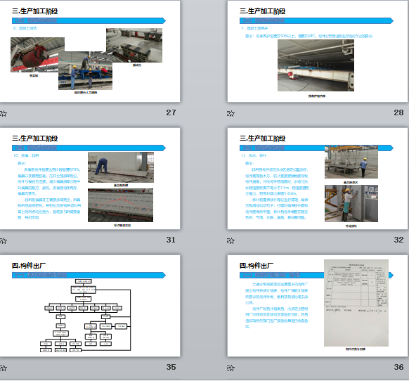 附件大?。?9.76MB所屬分類:BIM資料分享會員:芳華分享時間:2021-09-08最后更新:資源簡介/截圖:1、裝配式建筑概述 2、圖紙設(shè)計階段 3、生產(chǎn)加工階段 4、構(gòu)件出廠 5、現(xiàn)場吊裝 6、EPC項目創(chuàng)效要點 PC構(gòu)件廠商根據(jù)總包發(fā)布的項目總進度計劃進行《PC構(gòu)件深化圖》設(shè)計,PC構(gòu)件加工深化圖紙完成后7天內(nèi),PC構(gòu)件廠商編制《PC構(gòu)件生產(chǎn)進度計劃》,交由項目總承包工程部進行詳細審查,并經(jīng)項目經(jīng)理批準后提交PC構(gòu)件生產(chǎn)廠實施。內(nèi)墻板生產(chǎn)線和疊合板生產(chǎn)只需要一次混凝土澆筑即可成型,工藝相對簡單,因此兩種產(chǎn)品在一條生產(chǎn)線上進行混合生產(chǎn)就能夠滿足工藝及產(chǎn)能的要求 。外墻板自動化生產(chǎn)線根據(jù)建筑設(shè)計對外裝飾面的要求,生產(chǎn)線工藝設(shè)計分為兩種生產(chǎn)工藝,即正打工藝(先澆筑內(nèi)葉墻,后澆筑外葉墻)和反打工藝(先澆筑外葉墻,后澆筑內(nèi)葉墻),需要兩次混凝土澆筑振搗成型分別形成結(jié)構(gòu)層及裝飾層.固定生產(chǎn)線根據(jù)建筑設(shè)計對外裝飾面的要求,主要生產(chǎn)的預(yù)制構(gòu)件有疊合陽臺、預(yù)制樓梯、道路板、圍墻、PCF板、疊合梁等異型預(yù)制構(gòu)件的生產(chǎn)。模具外表面(窗蓋、中墻板等)無累積混凝土,模具外表面干凈;模具和模臺表面、無殘留混凝土塊,無污漬。模具內(nèi)表面打油均勻,手指摸模具表面手指上無明顯油漬,無黑物,窗蓋、底座及其它配件模板等外表面無積油,緩凝劑涂刷均勻無遺漏。整個模具拼縫處不能漏光,螺絲無松動無遺漏、拼縫接口處平整、無明顯縫隙;鋁窗型號正確、安裝穩(wěn)妥、無損傷、定位正確,窗耳間距正確;模具拼裝整體尺寸應(yīng)滿足圖紙要求。鋼筋安裝過程中應(yīng)避免碰到連接件。鋼筋骨架安放按照圖紙的指定位置,與側(cè)模的保護層符合圖紙要求,外漏鋼筋數(shù)量,尺寸符合圖紙要求。 預(yù)埋件無變形,損壞,安裝埋件過程中,禁止私自彎曲、切斷或更改已經(jīng)綁扎好的鋼筋籠,預(yù)埋件安裝位置符合圖紙要求。連接件與孔之間的空隙使用發(fā)泡膠封堵嚴實。擠塑板鋪裝完成后無凹凸不平的地方。 保溫板鋪裝完成后,要使用橡膠錘敲打增強與混凝土的粘貼力。1.布料均勻,振搗完全后,凝土上表面與側(cè)模上沿需保持在同一個平面,不允許高于或低于側(cè)模上沿。1.震動均勻,混凝土內(nèi)無殘留氣泡;2.澆筑混凝土與模具相平。冬季養(yǎng)護濕度在50%以上,溫度在60℃。構(gòu)件出窯后達到進行收光作業(yè)的要求?;炷恋孛婷鎸拥哪ㄆ焦ぷ鲬?yīng)在水泥初凝前完成,混凝土地面面層表面不應(yīng)有裂紋、脫皮、麻面、起砂等缺陷。(可采用抹光機收光,或者用鐵抹子人工反復(fù)搓壓)隨時觀察每個養(yǎng)護單元內(nèi)的溫度、濕度情況,及時作出調(diào)整??刂坪脴?gòu)件養(yǎng)護靜停,升溫,恒溫,降溫時間段。冬季養(yǎng)護濕度在90%以上,溫度在達到60℃,要求構(gòu)件出窯后達到拆模起吊強度。 拆模前構(gòu)件強度達到計劃強度的70%。模具以及套筒膠塞,壓桿全部拆卸到位,構(gòu)件與模臺無連接。減少模具拆卸過程中對模具的敲打、損傷。拆模后構(gòu)件完好,模具無變形。 起吊前模具及工裝要拆卸完全,吊具和吊頂規(guī)格相符。吊釘位無雜物,吊運時吊臂上的吊點均應(yīng)受力,短鏈條與吊臂要垂直、吊扣牢固 起吊后構(gòu)件運至洗水區(qū)指定位置放好,構(gòu)件底部墊木方,防止直接接觸地面導致構(gòu)件崩角;沖洗構(gòu)件粗糙面時,水槍與洗水粗糙面距離不得小于1.5m;粗糙面要完全露出,粗骨料漏出表面5-6mm。 修補前需將修補部位進行清理,確保無殘渣或松動石子;打磨時確保修補面和構(gòu)件面保持平整。修補后構(gòu)件表面無明顯色差、氣泡、水眼,崩角,裂紋等問題。