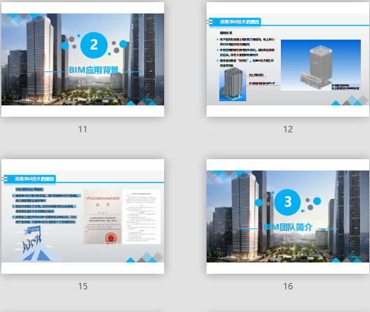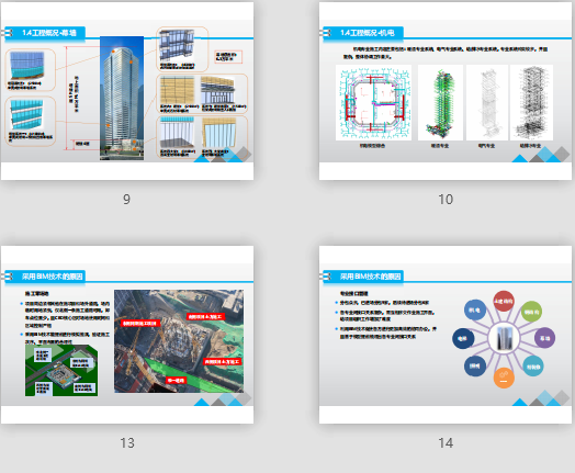 附件大小:13.3MB所屬分類:BIM資料分享會員:芳華分享時間:2021-09-08最后更新:資源簡介/截圖:工程目標 1. 質(zhì)量:鋼結(jié)構(gòu)金獎、建筑長城杯金獎、魯班獎 2. 安全:北京市安全文明樣板工地 3. 環(huán)境:美國LEED CS金級認證、全國建筑業(yè)綠色施工示范工程 4. BIM:北京市BIM應用示范工程(已立項) 通過北京市BIM示范工程立項 內(nèi)部目標 泰康集團董事長陳東升多次視察項目,確保成為泰康集團標桿項目機電專業(yè)施工內(nèi)容主要包括:暖通專業(yè)系統(tǒng)、電氣專業(yè)系統(tǒng)、給排水專業(yè)系統(tǒng),專業(yè)系統(tǒng)種類較多,并且 復雜,整體協(xié)調(diào)工作量大。 uf06c 地下結(jié)構(gòu)為混凝土框架剪力墻結(jié)構(gòu),地上核心筒和外框結(jié)構(gòu)均為鋼結(jié)構(gòu) uf06c 外框四角的鋼柱向平面外傾斜,結(jié)構(gòu)周邊懸挑封邊梁,存在大量的異形鋼構(gòu)件 uf06c 整體結(jié)構(gòu)高度“構(gòu)件化”,與BIM技術(shù)的工作理念想契合 uf06c 項目周邊緊鄰其他在施項目和場外道路,場內(nèi)臨時用地緊張,僅北側(cè)一條施工道路可用,卸車點位置少,且CBD核心區(qū)對場地使用時間和區(qū)域控制嚴格 uf06c 采用BIM技術(shù)能提前進行模擬推演,驗證施工次序、平面布置的合理性 uf06c 分包眾多,已進場分包9家,后續(xù)待進場分包6家 uf06c 各專業(yè)間接口關(guān)系復雜,需互相移交作業(yè)施工界面,給項目組織工作增加了難度 uf06c 利用BIM技術(shù)促使各方進行更加高效的協(xié)同辦公,并且基于模型提前梳理出各專業(yè)間接口關(guān)系 uf06c 隨著BIM技術(shù)的不斷發(fā)展,要不要用BIM已不是問題,核心問題是怎么用好BIM uf06c 國家政策的大力支持,相關(guān)標準的不斷出臺完善,是建筑行業(yè)處于改革的風口浪尖 uf06c 建筑施工企業(yè)平均利潤一直維持在3.6%以內(nèi),為實現(xiàn)產(chǎn)業(yè)突破,引進BIM技術(shù)無疑是一個良好的契機