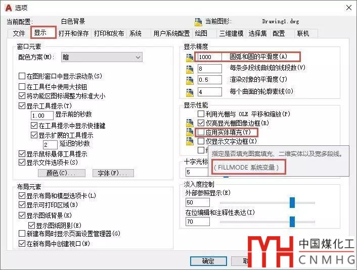 通過(guò)上面的講解我們知道配置文件保存的就是注冊(cè)表,也就是CAD軟件使用環(huán)境,這些環(huán)境不會(huì)因?yàn)榇蜷_(kāi)的圖紙或模板而變化。而模板文件跟DWG圖紙文件是類似的,他能保存圖形、圖層、文字樣式、標(biāo)注樣式等格式設(shè)置,模板文件可以確定新建圖紙的初始狀態(tài)。在同一配置下新建圖紙時(shí)可以使用不同的模板,在不同的配置下不會(huì)影響圖紙的數(shù)據(jù)。選項(xiàng)對(duì)話框中有些設(shè)置(變量)是保存到注冊(cè)表中的,有些卻是保存在圖紙中的,比如設(shè)置是否應(yīng)用實(shí)體填充的變量FILLMODE以及圓和弧的平滑度的VIEWRES等這些變量就是保存在圖紙中的,也就是可以保存到模板文件中,但無(wú)法保存到配置中,如下圖所示。